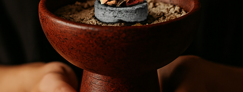 - Räucherwerk auflegen – Beim Weihrauchbrenner gibst du einfach eine kleine Menge auf das Sieb. Verwendest du eine Schale oder einen Kelch, entzünde die Kohle, bis sie eine weiße Ascheschicht bildet, und lege das Räucherwerk anschließend mit einem Räucherlöffel darauf.